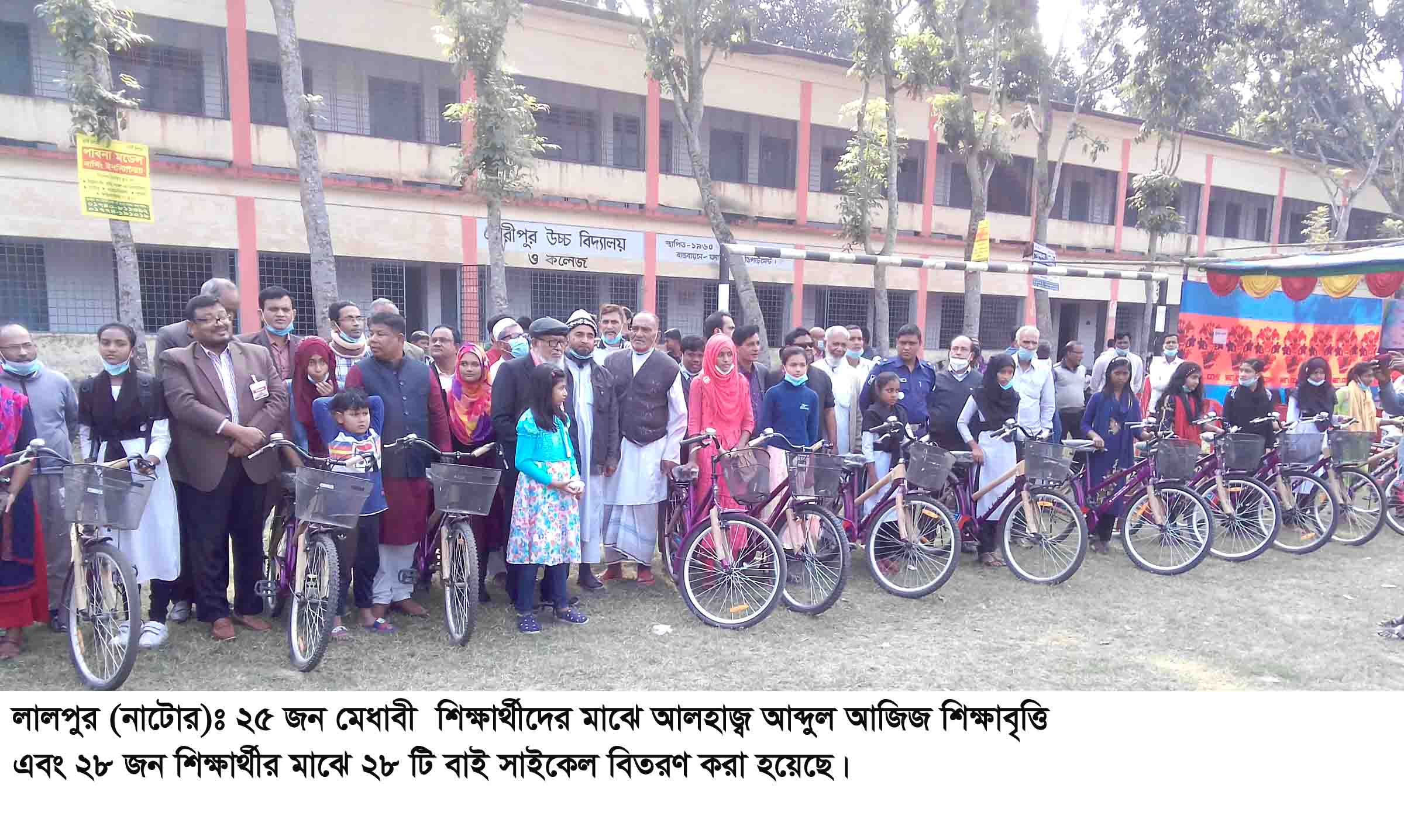 নাটোরের লালপুর উপজেলার গৌরীপুর উচ্চ বিদ্যালয় ও কলেজের ২৫ জন মেধাবী শিক্ষার্থীদের মাঝে আলহাজ্ব আব্দুল আজিজ শিক্ষাবৃত্তি এবং ২৮ জন শিক্ষার্থীর মাঝে ২৮ টি বাই সাইকেল বিতরণ করা হয়েছে।