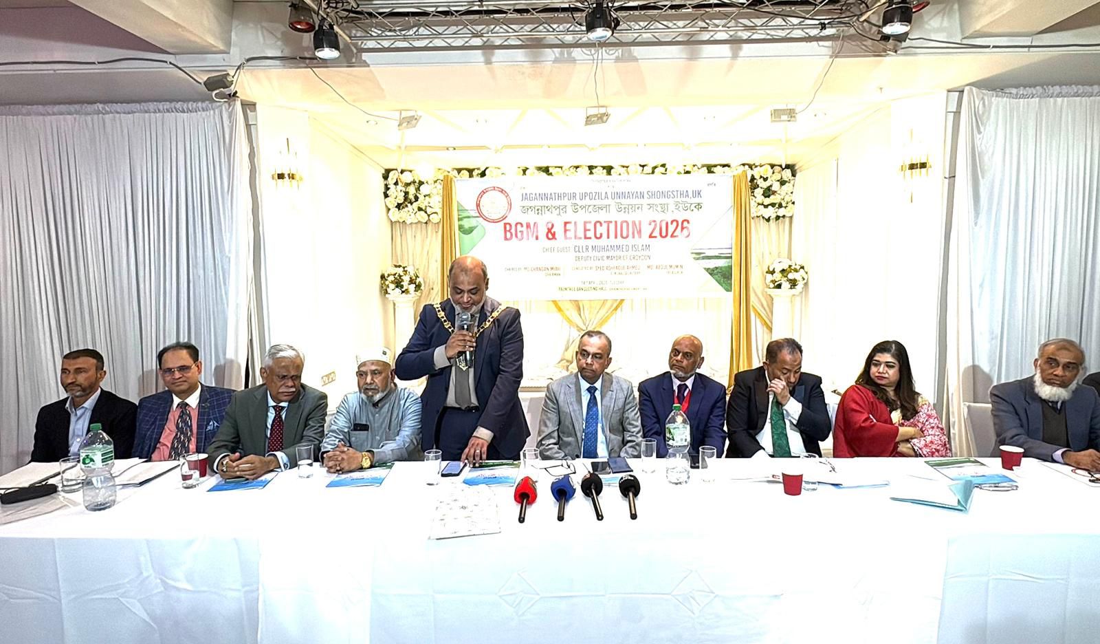 মির্জা আবুল কাসেম:১৪ এপ্রিল মঙ্গলবার জগন্নাথপুর উপজেলা উন্নয়ন সংস্থা ইউ কে উদ্যোগে অভিজাত পামট্রি ব্যানকোয়েটিং হলে সংগঠনের BGM ও Election অনুষ্ঠিত হয়। উক্ত সভায় সভাপতিত্ব করেন সংগঠনের সভাপতি মোঃ চন্দন মিয়া এবং অনুষ্ঠানটি পরিচালনা করেন সাধারণ সম্পাদক সৈয়দ আশফাক আহমেদ , রিলিজিয়াস সেক্রেটারি আব্দুল বাছির কয়েছের কোরআন তেলাওয়াতের মাধ্যমে অনুষ্ঠিত সভায় সংগঠনের সার্বিক কার্যক্রমের প্রতিবেদন ও আর্থিক প্রতিবেদন পেশ করেন সংগঠনের সাধারণ সম্পাদক সৈয়দ আশফাক আহমেদ ও কোষাধ্যক্ষ আব্দুল মুমিন।সর্ব সম্মতি ক্রমে সাধারণ সম্পাদক ও কোষাধ্যক্ষের বার্ষিক প্রতিবেদন গৃহীত হয় ।অনুষ্ঠানে প্রধান অতিথি হিসাবে উপস্থিত ছিলেন ক্রয়ডন কাউন্সিলের ডেপুটি সিভিক মেয়র কাউন্সিলর মোহাম্মাদ ইসলাম।
