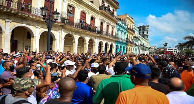 গত ৩০ বছরের মধ্যে সবচেয়ে কঠিন অর্থনৈতিক সংকট মোকাবেলা করছে কিউবা। বিদ্যুৎ ও খাদ্য ঘাটতিতে ভোগা কিউবার বিভিন্ন শহরে স্বত:স্ফূর্ত এ বিক্ষোভ অনুষ্ঠিত হয়। রাজধানী হাভানায় কয়েকশ’ বিক্ষোভকারী ‘আমরা স্বাধীনতা চাই’ বলে শ্লোগান দেয়।