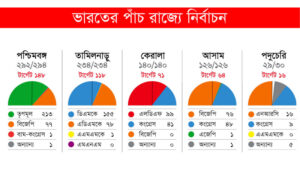 গতকাল ফলাফল ঘোষণায় দেখা যায়, তৃণমূল প্রায় পঞ্চাশ শতাংশ ভোট পেয়েছে। বিজেপি পেয়েছে ৩৬ শতাংশ। কংগ্রেস আড়াই ও সিপিএম সাড়ে চার শতাংশ ভোট পেয়েছে। অবশ্য দেশটির অন্যতম শক্তিশালী রাজনৈতিক দল কংগ্রেস এবারের ভোটে না আসায় এবং বামফ্রন্টের ভরাডুবি হওয়ায় ২০১৬ সালের বিধানসভা নির্বাচনের তুলনায় তৃণমূল ও বিজেপি দুই দলেই আসন বেড়েছে। ভারতের সংবাদমাধ্যমগুলোর হিসাবে এবারের বিধানসভায় আসন সবচেয়ে বেশি বেড়েছে বিজেপির। এবার দলটির আসন বেড়েছে ৭২ শতাংশ, ২০১৬ সালে যেখানে মাত্র ৩টি আসন ছিল ধর্মভিত্তিক দলটির সেখানে এবার জিতেছে ৭৫টিতে। তৃণমূলের বেড়েছে ৬ শতাংশ। অন্যদিকে বামফ্রন্টের আসন কমেছে ৭২ শতাংশ। এই ফলাফলের কারণে অবশ্য বিজেপির রাজ্য প্রধান দিলীপ ঘোষের দাবিÑ হারলেও রাজ্যে তাদের উন্নতি হয়েছে বিস্তর।