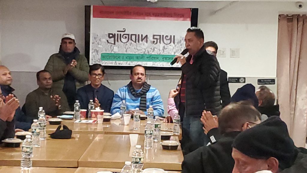 বাংলাদেশি আমেরিকান সোসাইটির সভাপতি মোহাম্মদ আলীর সভাপতিত্বে অনুষ্ঠানে শুভেচ্ছা বক্তব্য রাখেন- স্টেট অ্যাসেম্বলিম্যান ডেভিড ওয়েপ্রিন, সিটি কাউন্সিলম্যান জিম জিনারো, সিটি কাউন্সিলওম্যান ইদ্রিয়ানা অ্যাডম, ডেমোক্র্যাটিক পার্টির ডিস্ট্রিক্ট লিডার মিসেস এস্ট্রেঞ্জার, মূলধারার রাজনীতিক মোর্শেদ আলম এবং কুইন্স ডেমোক্র্যাটিক পার্টির ডিস্ট্রিক্ট এট লার্জ অ্যাটর্নি মঈন চৌধুরী।
