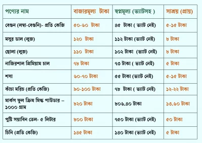 নিচে বিশেষ ছাড়ের পণ্যগুলোর দাম তুলে ধরা হলো: