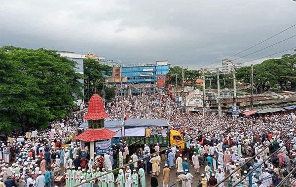 সিলেট অফিস : ভারতে মহানবী হজরত মুহাম্মদ সাল্লাল্লাহু আলাইহি ওয়াসাল্লামকে নিয়ে কটুক্তির প্রতিবাদে সিলেটের দরগাহ মাদরাসার মুহতামিম ও শায়খুল হাদীস আল্লামা মুহিব্বুল হক গাছবাড়ী হুজুর এর আহবানে সিলেট নগরীতে সর্বস্তরের তৌহিদী জনতার সমাবেশ করেছে।